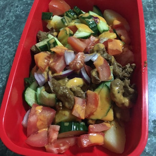 The fifth day on a plate. This day has a bit more calories than usual, hitting 2300 this week with a few more calories in the main meals and extra calories across the snacks and dessert.